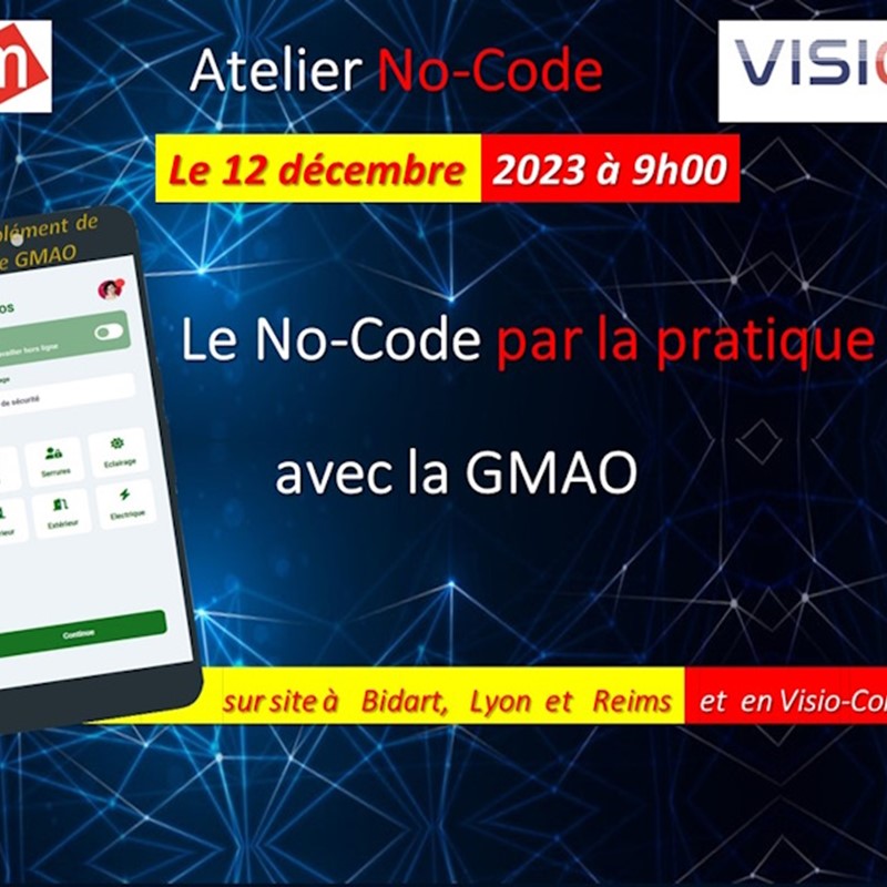 AFIM Rhône Alpes & Vision de ALGO Tech avec la participation de DIMO Maint ont le plaisir de vous convier à participer à un Atelier sur le No-Code par la Pratique ! Cet événement s ...
