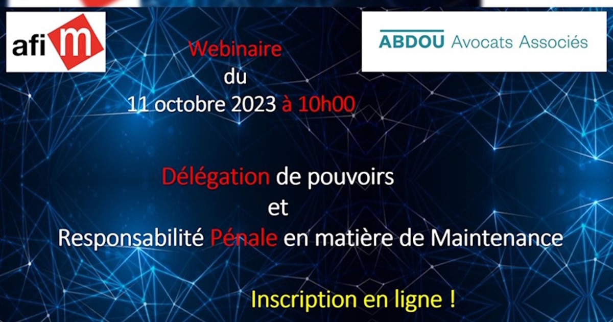 L’AFIM Rhône Alpes à le plaisir de vous inviter à participer au Webinaire animé par le Cabinet ABDOU le 11/10/2023 à 10h00. En cas d'accident grave o ...