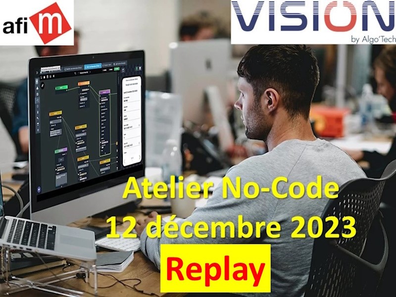 AFIM Rhône Alpes & Vision de ALGO Tech avec la participation de DIMO Maint ont eu le plaisir de vous convier à participer à un Atelier sur le No-Code par la Pratique !